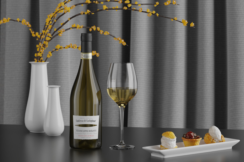 A modern, fresh style of Moscato d’Asti DOCG that represents one of the most iconic wines of the Piedmontese wine tradition. Sweet and delicate in flavor, it recalls peach and apricot with hints of sage, lemon, and orange blossom. Ideal for pairing with small pastries or desserts.